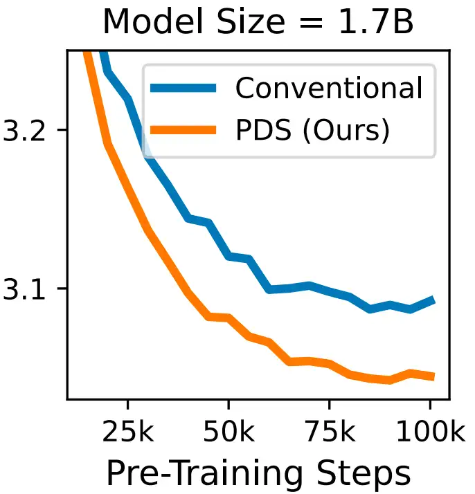 图 4: PDS 方法训练出的模型在语言建模任务上的性能