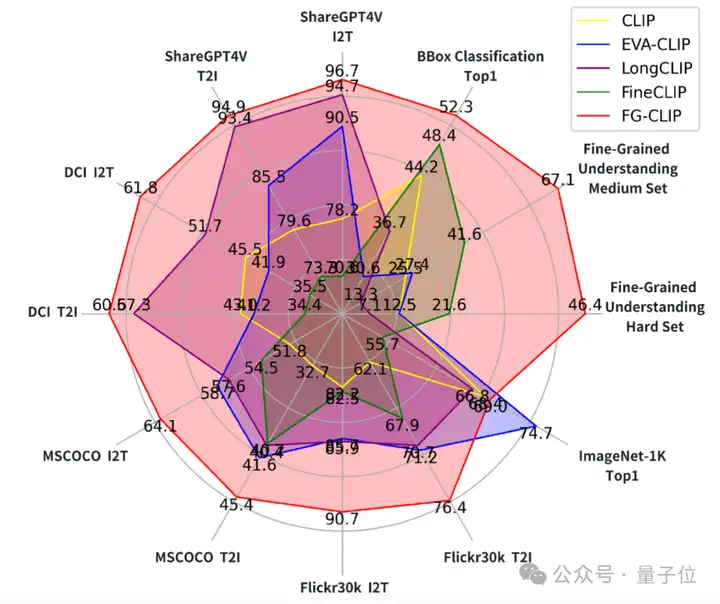 实验结果显示,FG-CLIP在细粒度理解、开放词汇对象检测、长短文本图文检索以及通用多模态基准测试等下游任务中均显著优于原始CLIP和其他最先进方法。