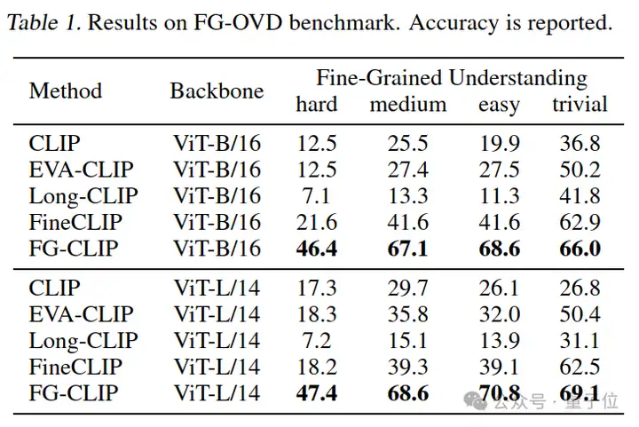 FG-CLIP基于FG-OVD数据集对开源图像-文本对齐模型进行了系统评估。