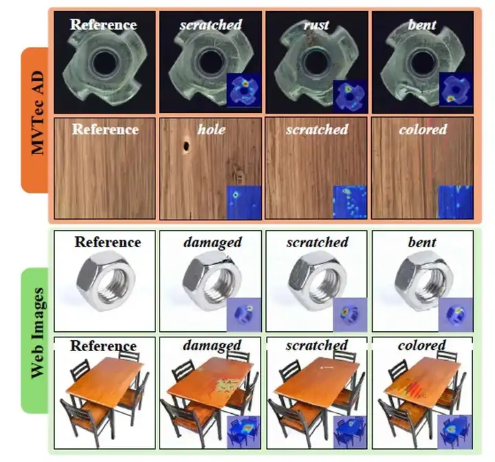 AnomalyAny 的创新之处在于将预训练多模态模型(SD+GPT-4)与领域知识结合,无需任何训练即可生成定制化异常样本。这一特性使其在以下场景具有广阔应用前景: