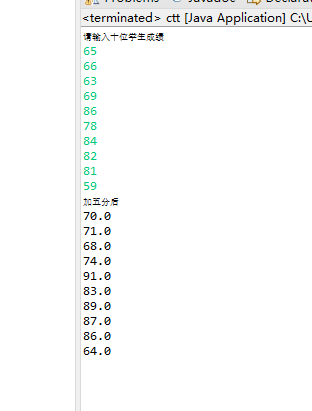 8.定义一个double数组,存放10个学生的成绩,给所有同学加5分,不能超过100分。