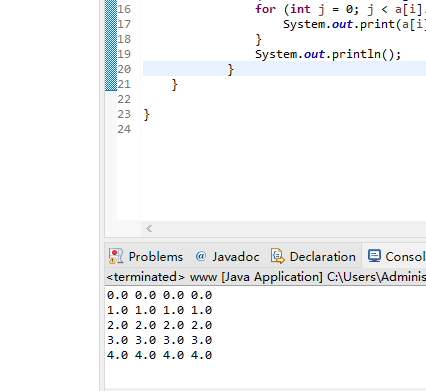 2、 输出一个double型二维数组(长度分别为5、4,值自己设定)的值。