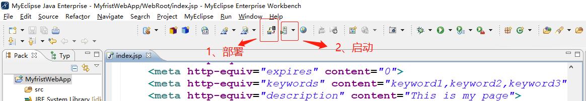新建的webproject名字叫“MyfristWebApp”,默认路径则是http://localhost:8080/MyfristWebApp/index.jsp