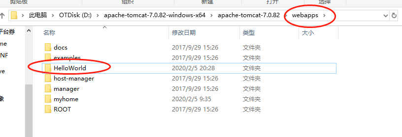 我们可以看到再tomca得目录中,webapp下面我们的文件名已经变成了HelloWorld