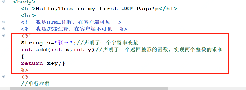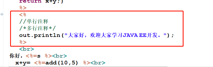 jsp脚本注释: //单行注释 /**/多行注释 //客户端不可见