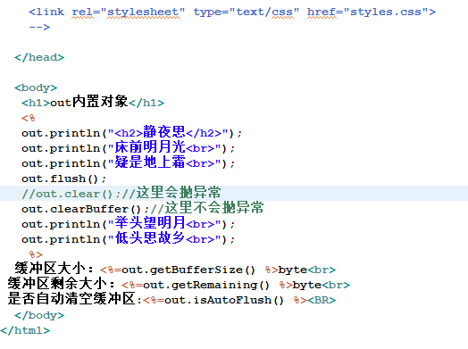 (一)、out 对象:JspWriter类的实例,是向客户端输出内容常用的对象