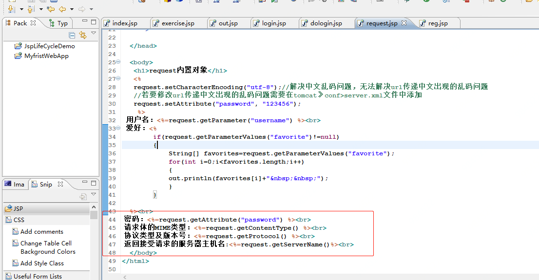 jsp页面元素构成:指令、表达式、小脚本、声明、注释、静态内容