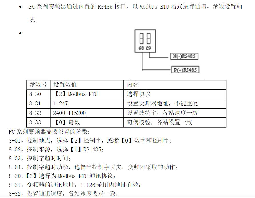 打开变频器手册,设置变频器485参数。