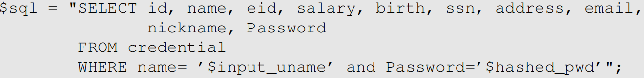 位于/var/www/SQL_Injection目录中的PHP代码的不安全的unsafe_home.php,用于进行用户身份验证。