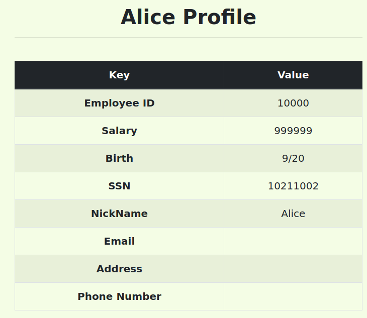 通过表单向SQL中注入 Alice’,salary = ‘999999,将Alice的salary修改为999999.