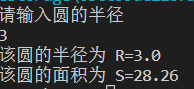 ort java.util.Scanner; import javax.swing.plaf.basic.BasicInternalFrameTitlePane.SystemMenuBar; public class index { public static void main(String[] args) { Scanner scanner= new Scanner(System.in); System.out.println("请输入圆的半径"); final double PI=3.14; double r=scanner.nextDouble(); double circle =2*PI*r; double area =PI*Math.pow(r, 2); System.out.println("该圆的半径为 R="+r); System .out.println("该圆的面积为 S="+area); } }
