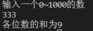 import java.util.Scanner; import javax.swing.plaf.basic.BasicInternalFrameTitlePane.SystemMenuBar; import javax.swing.text.Style; public class index { /** * @param args */ public static void main(String[] args) { Scanner scanner= new Scanner(System.in); System.out.println("输入一个0~1000的数"); int num=scanner.nextInt(); int ge=num%10; int shi=num/10%10; int bai=num/100; System.out.println("各位数的和为" +(ge+shi+bai)); } }