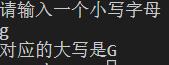 import java.util.Scanner; import javax.swing.plaf.basic.BasicInternalFrameTitlePane.SystemMenuBar; import javax.swing.text.Style; public class index { /** * @param args */ public static void main(String[] args) { Scanner scanner= new Scanner(System.in); System.out.println("请输入一个小写字母"); char c=scanner.next().charAt(0); char daxie=(char)(c-32); System.out.println("对应的大写是" +daxie); } }