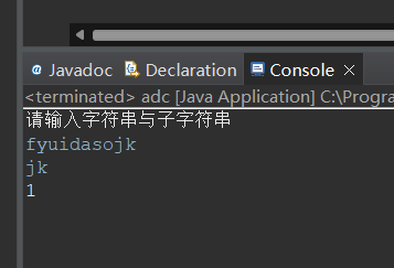 package 阿萨德; import java.util.Scanner; public class adc { public static void main(String[] args) { System.out.println("请输入字符串与子字符串"); Scanner in = new Scanner(System.in); String s = in.next(); String a = in.next(); int num = 0; for(int i = 0;i<s.length()-a.length();i=s.indexOf(a, i)+1){ if(s.indexOf(a, i)!=-1){ num++; } } System.out.println(num); } }