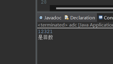 package 阿萨德; import java.util.Scanner; public class adc { public static boolean foo() { Scanner in=new Scanner(System.in); String s =in.next(); int j = s.length()-1; for(int i=0;i<s.length()/2;i++) { if(s.charAt(i)!=s.charAt(j)) { return false; } j--; } return true; } public static void main(String[] args) { if(foo()) { System.out.println("是回数"); }else { System.out.println("不是回数"); } } }