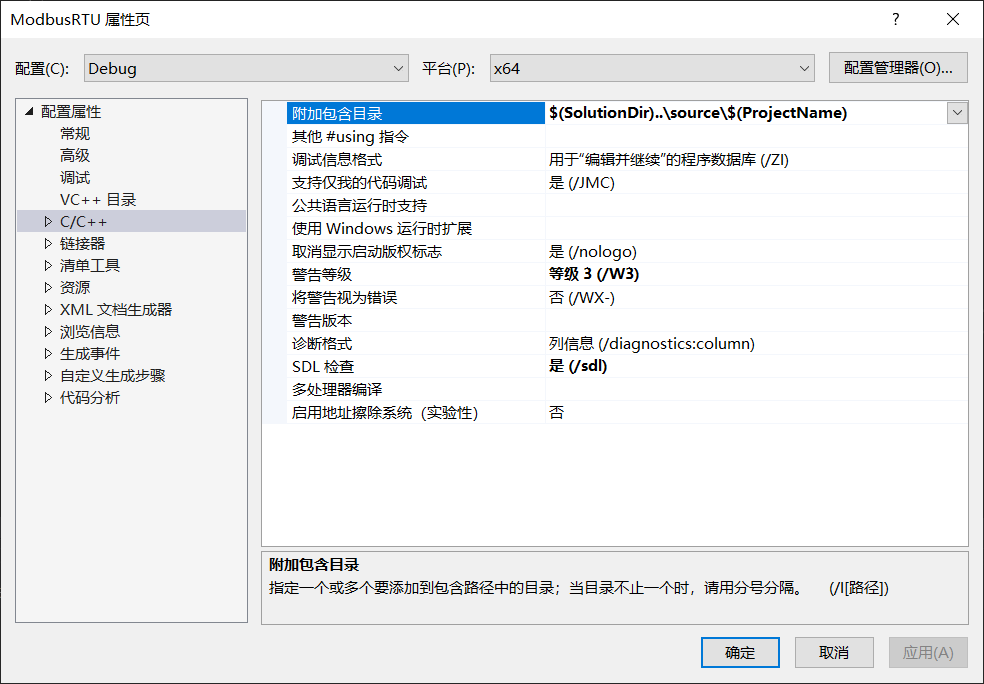 *附加包含目录:$(SolutionDir)..\source\$(ProjectName)(单项目和多项目都适用)