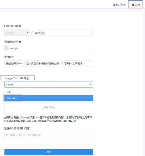 进入接口列表,点击设置=>点击Swagger Docs API选择Upload(本地文件上传),如下图: