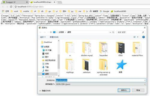 浏览器访问:http://localhost:8080/v2/api-docs 就看到项目的所有接口JSON格式的,右键另存为文件,如下图: