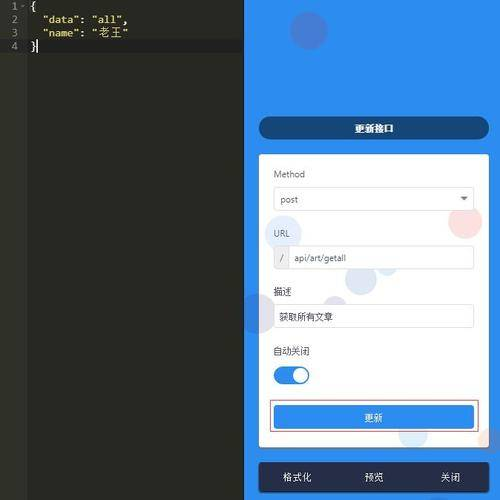 编辑完直接点击更新接口即可,注意编辑页面还有一个预览按钮,点入可以模拟请求,这下连Postman都省了,效果如下: