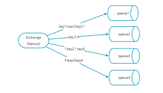 - topic中,将routingkey通过“.”来分为多个部分;