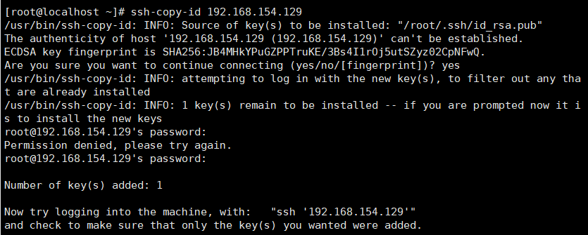 接下来我们就要把Server A(192.168.154.128)的公钥拷贝到Server B(192.168.154.129)上并授权。
