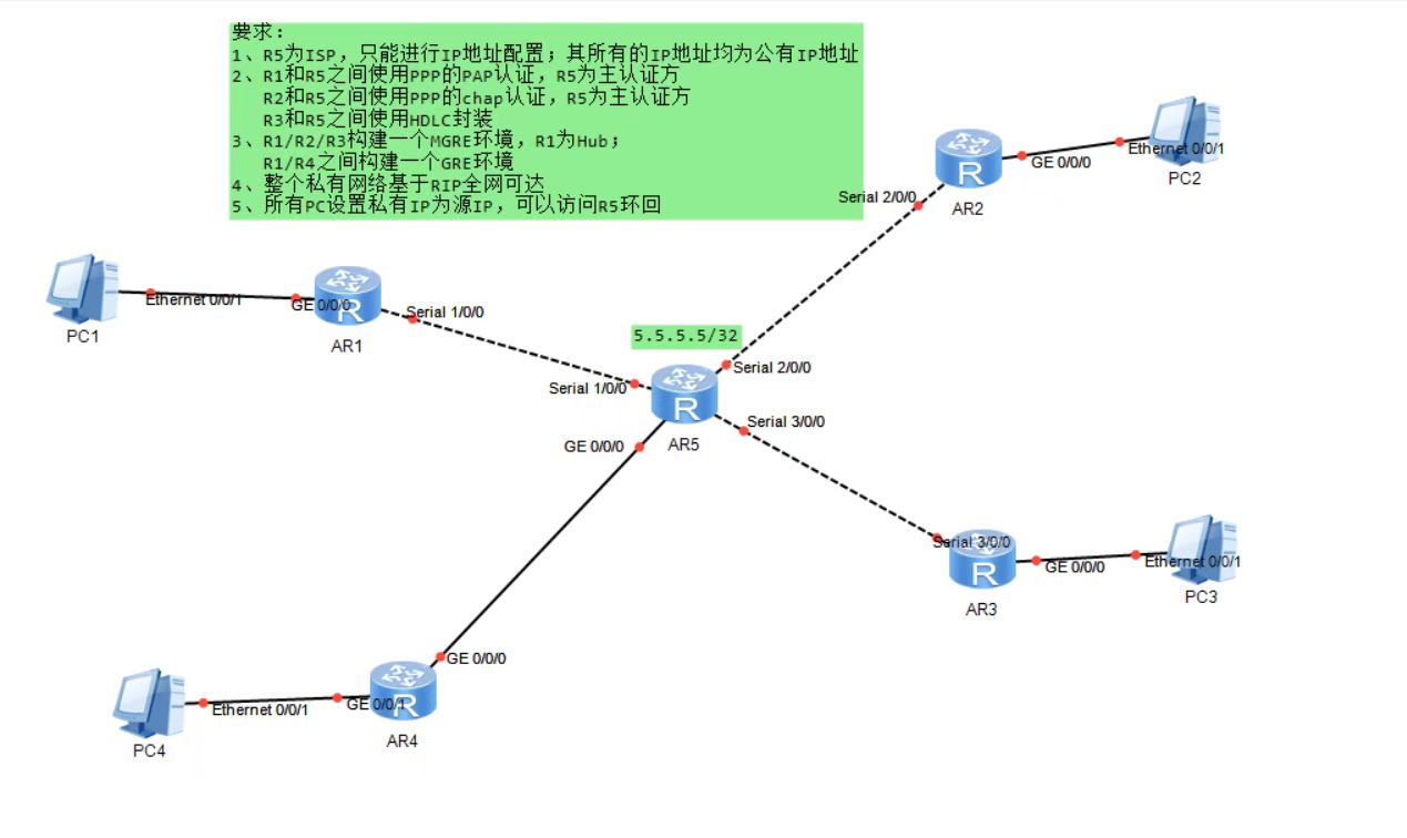 (1)R1和R5间使用ppp的PAP认证,R5为主认证方