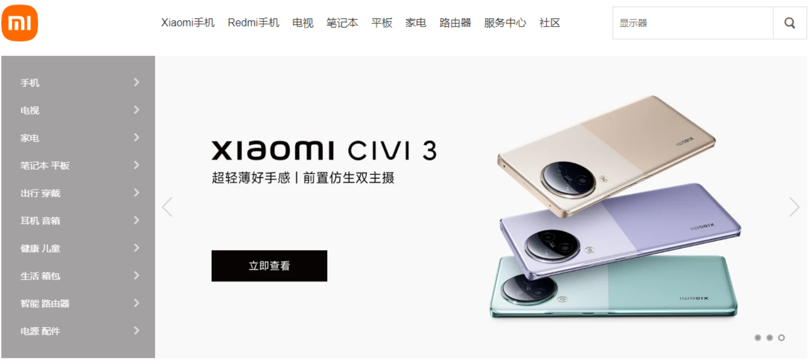 <!DOCTYPE html> <html lang="en"> <head> <meta charset="UTF-8"> <meta name="viewport" content="width=device-width, initial-scale=1.0"> <title>Document</title> <style> * { margin: 0; padding: 0; box-sizing: border-box; } li { list-style: none; } a { text-decoration: none; } input { outline: none; } .container { width: 1226px; margin: 0 auto; } .header .left img { width: 56px; height: 56px; } .head { display: flex; justify-content: space-between; align-items: center; } .head .mid ul { display: flex; } .head .mid ul li { margin-right: 30px; } .head .mid ul a { color: #757575; } .head .mid ul a:hover { color: orange; } .head .right { position: relative; } .head .right input { width: 245px; height: 40px; border: 1px solid #757575; border-radius: 5px; } .head .right span { display: inline-block; width: 52px; height: 40px; line-height: 40px; position: absolute; right: 0; } /* banner */ .banner { position: relative; margin-top: 20px; } .nav { position: absolute; top: 0; left: 0; } .nav ul { background-color: rgba(105, 101, 101, .6); width: 234px; height: 460px; font: 18px/1.5 Helvetica Neue, Helvetica, Arial, Microsoft Yahei, Hiragino Sans GB, Heiti SC, WenQuanYi Micro Hei, sans-serif; padding: 20px 0px; } .nav ul li { display: flex; justify-content: space-between; padding: 0px 30px; } .nav ul li a { display: inline-block; width: 234px; height: 42px; line-height: 42px; color: aliceblue; } .nav ul li:hover { background-color: orange; } .banner i { display: inline-block; width: 41px; height: 69px; font-size: 30px; } .a { position: absolute; top: 50%; margin-top: -33.5px; left: 240px; } .b { position: absolute; top: 50%; margin-top: -33.5px; right: 0; } .banner .circle { width: 200px; position: absolute; right: 15px; bottom: 15px; } .banner .circle span { display: inline-block; width: 10px; height: 10px; background-color: pink; border-radius: 50%; } /* banner end */ </style> </head> <body> <div class="header"> <div class="container head"> <div class="left"><img src="https://cdn.cnbj1.fds.api.mi-img.com/mi.com-assets/shop/img/logo-mi2.png" alt=""></div> <div class="mid"> <ul> <li><a href="#">Xiaomi手机</a></li> <li><a href="#">Redmi手机</a></li> <li><a href="#">电视</a></li> <li><a href="#">笔记本</a></li> <li><a href="#">平板</a></li> <li><a href="#">家电</a></li> <li><a href="#">路由器</a></li> <li><a href="#">服务中心</a></li> <li><a href="#">社区</a></li> </ul> </div> <div class="right"> <input type="text"> <span>搜索</span> </div> </div> </div> <div class="banner container"> <img src="https://cdn.cnbj1.fds.api.mi-img.com/mi-mall/0942f8338bc19a2cde9394479fc123c8.jpg?thumb=1&w=1226&h=460&f=webp&q=90" alt=""> <div class="nav"> <ul> <li> <a href="#"> 手机 </a> <span>></span> </li> <li> <a href="#"> 电视 </a> <span>></span> </li> <li> <a href="#"> 家电 </a> <span>></span> </li> <li> <a href="#"> 笔记本 平板 </a> <span>></span> </li> <li> <a href="#"> 出行 穿戴 </a> <span>></span> </li> <li> <a href="#"> 耳机 音响 </a> <span>></span> </li> <li> <a href="#"> 健康 儿童 </a> <span>></span> </li> <li> <a href="#"> 生活 箱包 </a> <span>></span> </li> <li> <a href="#"> 智能 路由器 </a> <span>></span> </li> <li> <a href="#"> 电源 配件 </a> <span>></span> </li> </ul> </div> <i class="a"> <</i> <i class="b">></i> <div class="circle"> <span></span> <span></span> <span></span> <span></span> </div> </div> </body> </html>