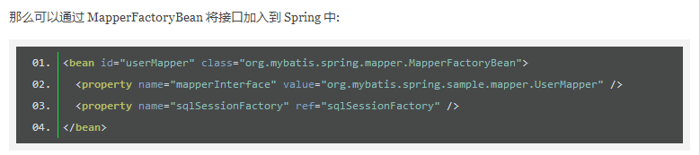 可以看mybatis中文官网中的介绍,这里的MapperFactoryBean指的就是WxyFactoryBean,UserMapper就是我们的UserMapper。