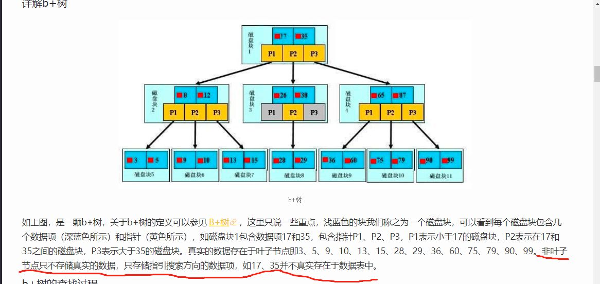 B树避免了红黑树的缺点,但是B树的非叶子节点是存放date指针,而磁盘一次IO读取的内容是有限的,如果data数据量过大,也需要更多的IO次数。