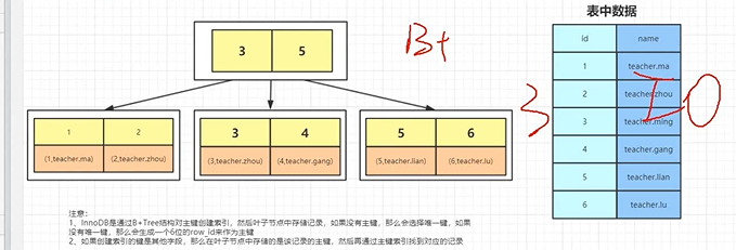 1.InnoDB是通过B+Tree结构对主键创建索引,然后叶子节点存储记录,如果没有主键,那么会选择唯一键,如果没有唯一键,那么会生成一个6位的row_id来作为主键。