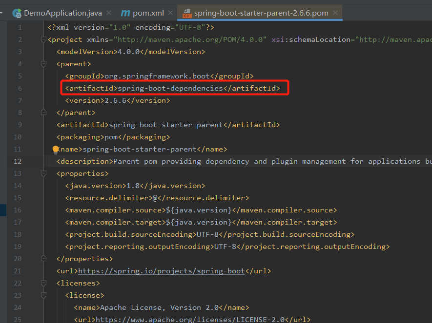 里面还存在一个<parent>,然后再点进spring-boot-dependencies