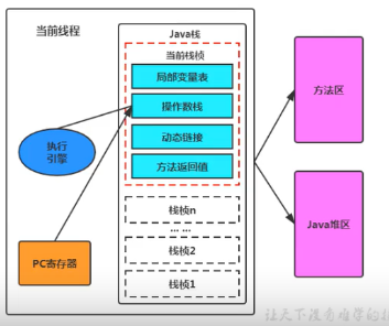 作用:主要管Java程序的运行,它保存方法的局部变量(8种基本数据类型、对象的引用地址)、部分结果,并参与方法的调用和返回