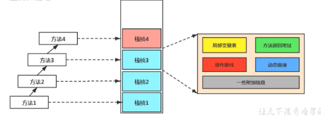 定义:早期也叫JAVA栈。每个线程在创建时都会创建一个虚拟机栈,其内部保存一个个的栈帧,对应着一次次的Java方法调用。