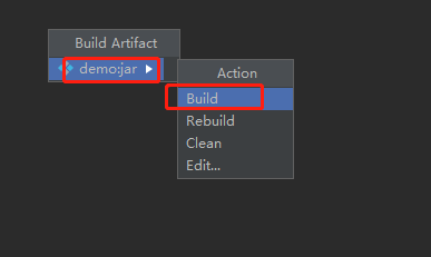 7、选择Build,然后再选择build Artufacts会出现一个小窗口,选择第一个build此时jar包已经生成