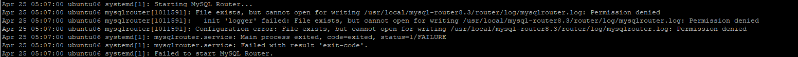 一开始通过systemctl start mysqlrouter报错,查看系统日志如下,提示相关路径没有权限