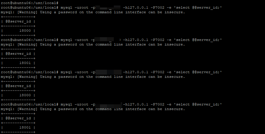 通过绑定的只读节点的7002端口,请求可以在主从两个节点之间轮训,请注意MySQL是在连接的时候轮训配置的读节点的,数据库连接之后指向的节点就不变了,所以这个验证要新建连接的方式
