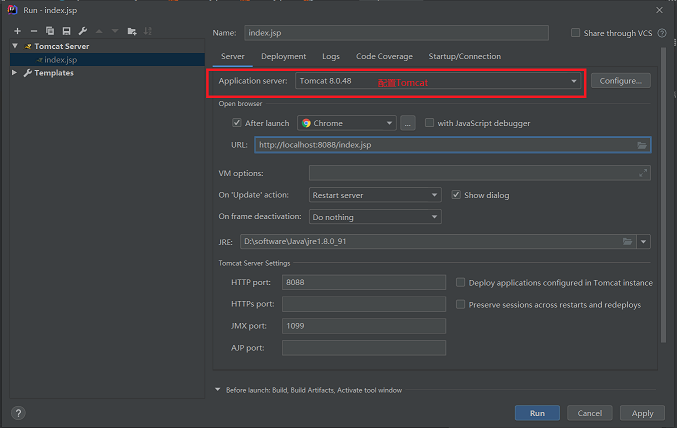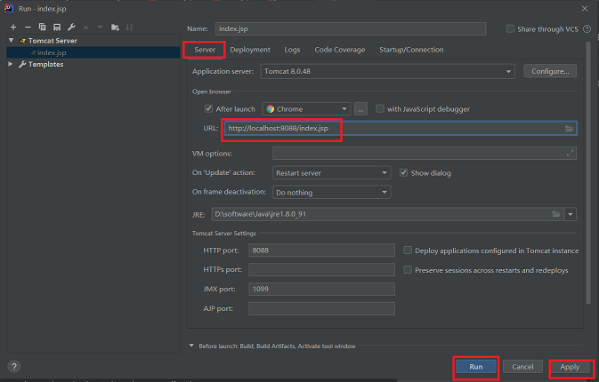 (4)选择Server——>修改访问路径——>Apply——>Run,就可以正常访问页面了