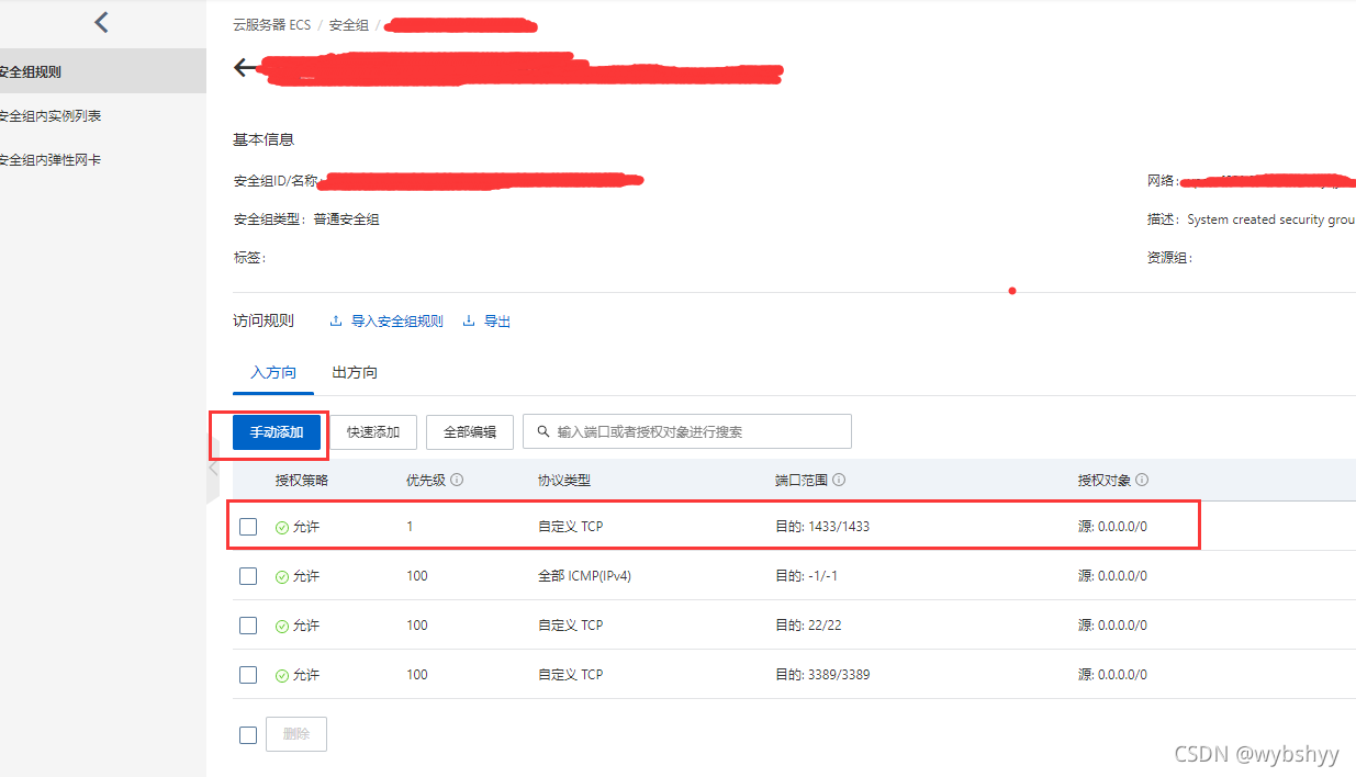 一:找到 安全组配置,打开 安全组配置,点击配置规则,增加 地址段访问的 授权规则,Sql Server的默认端口时 1433