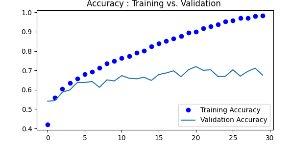 plt.title('Accuracy : Training vs. Validation ')