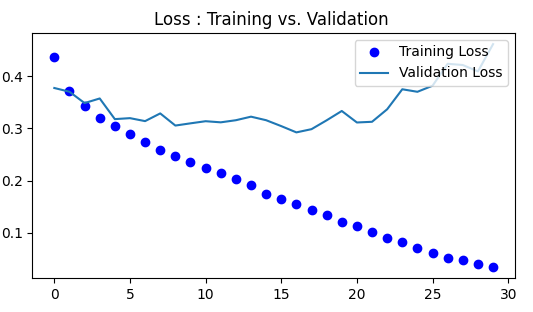 plt.title('Loss : Training vs. Validation ')