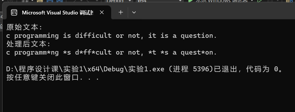 #include <stdio.h> #define N 80 void replace(char* str, char old_char, char new_char); // 函数声明 int main() { char text[N] = "c programming is difficult or not, it is a question."; printf("原始文本: \n"); printf("%s\n", text); replace(text, 'i', '*'); // 函数调用 注意字符形参写法,单引号不能少 printf("处理后文本: \n"); printf("%s\n", text); return 0; } // 函数定义 void replace(char* str, char old_char, char new_char) { int i; while (*str) { if (*str == old_char) *str = new_char; str++; } }