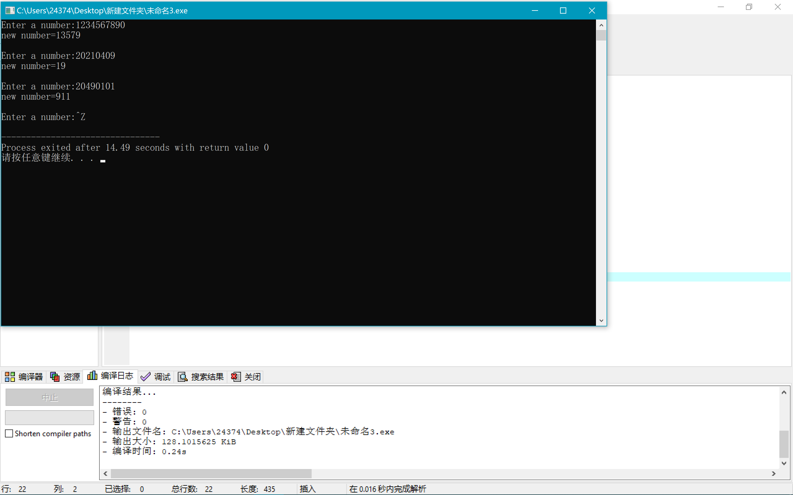 19 printf("new number=%d\n\n", s);