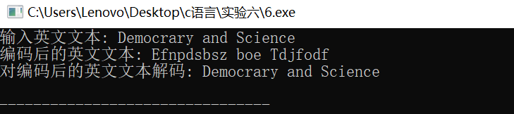 #include <stdio.h> #define N 80 void encoder(char *s); // 函数声明 void decoder(char *s); // 函数声明 int main() { char words[N]; printf("输入英文文本: "); gets(words); printf("编码后的英文文本: "); encoder(words); // 函数调用 printf("%s\n", words); printf("对编码后的英文文本解码: "); decoder(words); // 函数调用 printf("%s\n", words); return 0; } /*函数定义 功能:对s指向的字符串进行编码处理 编码规则: 对于a~z或A~Z之间的字母字符,用其后的字符替换; 其中,z用a替换,Z用A替换 其它非字母字符,保持不变 */ void encoder(char *s) { int i; for(i=0;i<N;i++) { if(s[i]>='a'&&s[i]<'z'||s[i]>='A'&&s[i]<'Z') s[i]+=1; else if(s[i]=='z'||s[i]=='Z') s[i]=s[i]-25; } } /*函数定义 功能:对s指向的字符串进行解码处理 解码规则: 对于a~z或A~Z之间的字母字符,用其前面的字符替换; 其中,a用z替换,A用Z替换 其它非字母字符,保持不变 */ void decoder(char *s) { int i; for(i=0;i<N;i++) { if(s[i]=='A'||s[i]=='a') s[i]=s[i]+25; else if(s[i]>'A'&&s[i]<='Z'||s[i]>'a'&&s[i]<='z') s[i]=s[i]-1; } }