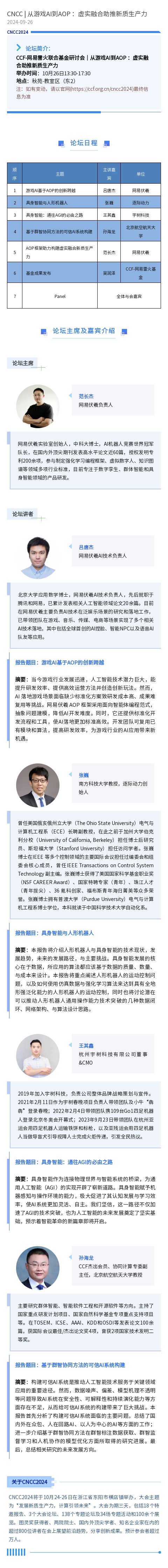 在本次论坛中,我们将深入讨论基于RL理论重新设计的以智能体为中心的AOP技术,聚焦游戏AI、具身智能、群体智能等前沿技术,并展示智能体框架在虚拟空间的游戏AI、实际生活场景中的智能零售、生产领域的智能制造和智能机器人等创新实践。同时,CCF-网易雷火联合基金的首批优秀成果也将在论坛上揭晓。