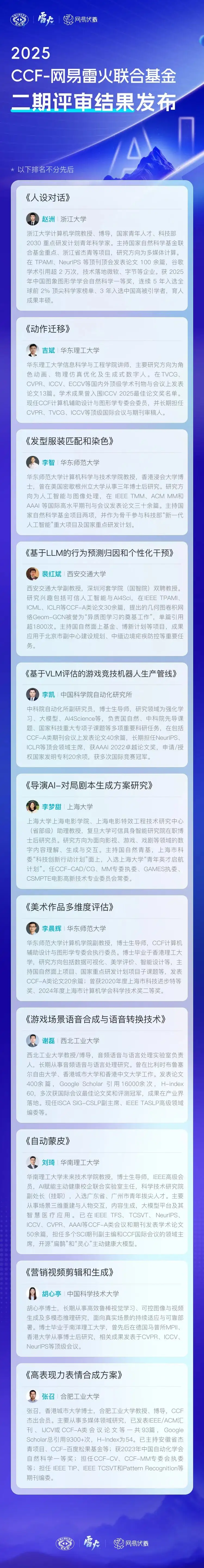 评审结果公示|2025年CCF-网易雷火联合基金二期