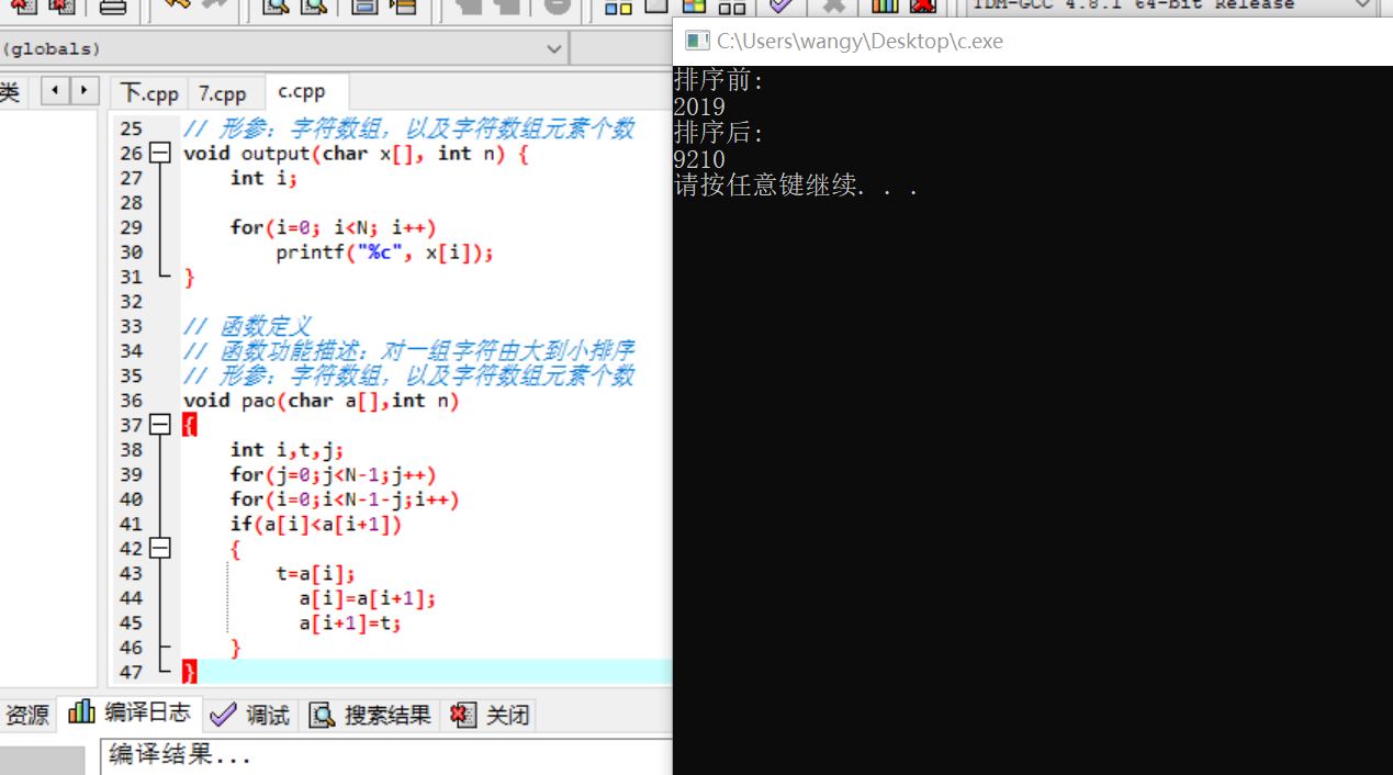 // 函数功能描述:输出包含有n个元素的字符数组元素
