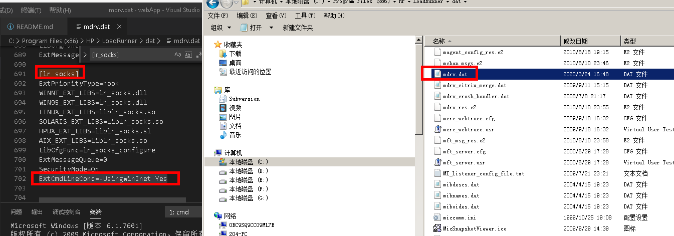 2.在安装目录的dat文件夹中查找mdrv.dat,找到[lr_socks]段,在最后添加“ExtCmdLineConc=-UsingWinInet Yes”一句;