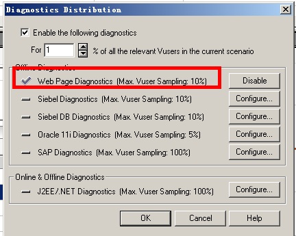5.运行Controller施压,如果仍然报错,在菜单栏中点击Diagnostics->configuration项,将web page diagnostics项disable掉。