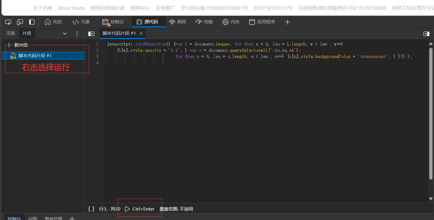 - F12打开调试工具,利用源代码运行JS脚本