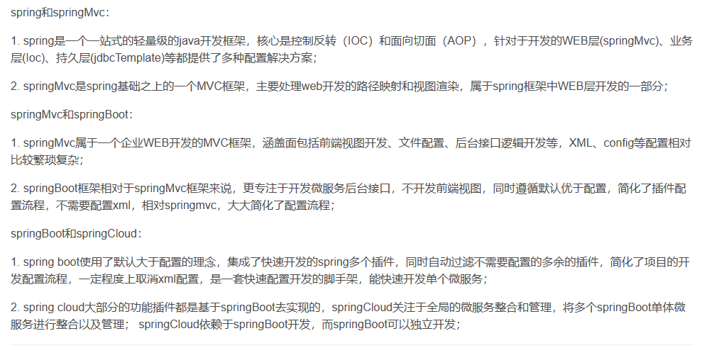spring和spring boot、spring mvc 、 spring cloud的区别